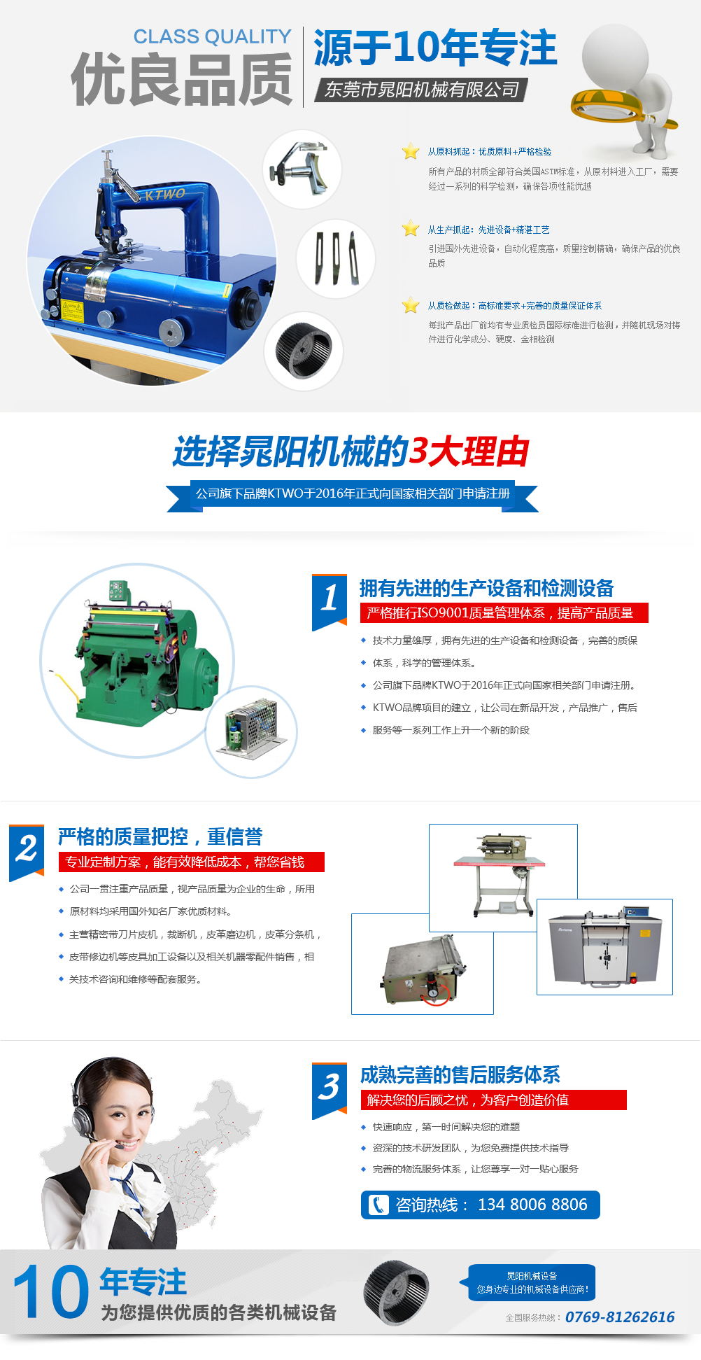 東莞市晁陽機(jī)械有限公司(簡(jiǎn)稱晁陽皮具機(jī)械),是一家由2008年收購整合原臺(tái)灣臺(tái)北縣晁陽實(shí)業(yè)有限公司后重組而來的獨(dú)資公司。重組后注冊(cè)地位于廣東省東莞市。經(jīng)營各類皮具機(jī)械,鞋業(yè)機(jī)械。主營精密帶刀片皮機(jī),裁斷機(jī),皮革磨邊機(jī),皮革分條機(jī),皮帶修邊機(jī)等皮具加工設(shè)備以及相關(guān)機(jī)器零配件銷售,相關(guān)技術(shù)咨詢和維修等配套服務(wù)。